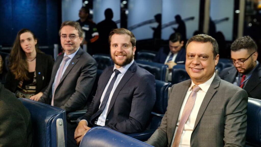 Acompanharam o presidente, no Senado, o diretor institucional André Horta, o assessor especial da presidência, Matheus Menegaz, e a assessora técnica, Carolina Michelman.