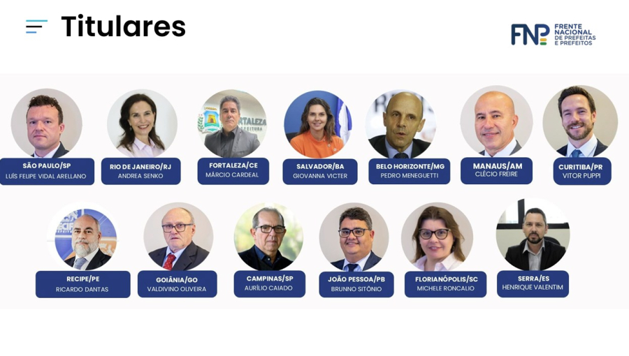 Em assembleia, foram definidos os 13 membros da FNP para serem os titulares do CS-CGIBS, todos secretários municipais de Fazenda ou Finanças. São eles: